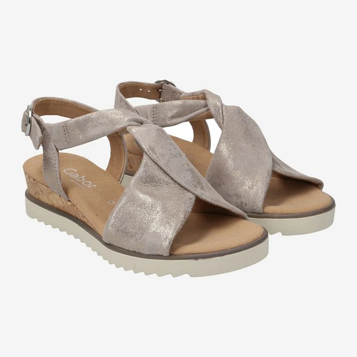 Gabor stands for comfort, tradition and competence. You will enjoy a fantastically pleasant wearing feeling with this gold metallic coated sandal. The insole is softly padded, the leather supple and the cork layer in the sole cushions your steps perfectly. The design is clear, and yet somewhat playful. Quite typical for Gabor, because this makes them wonderfully versatile to combine in everyday life!
