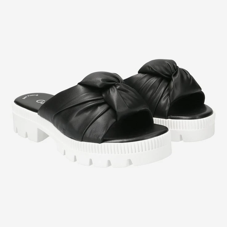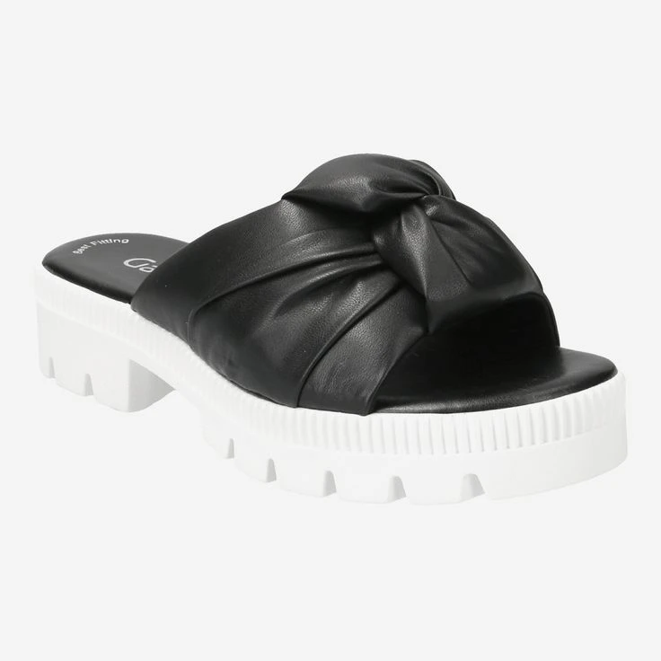 - Platform heel, bow appliqué/knot look