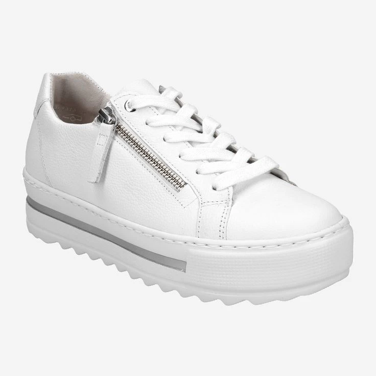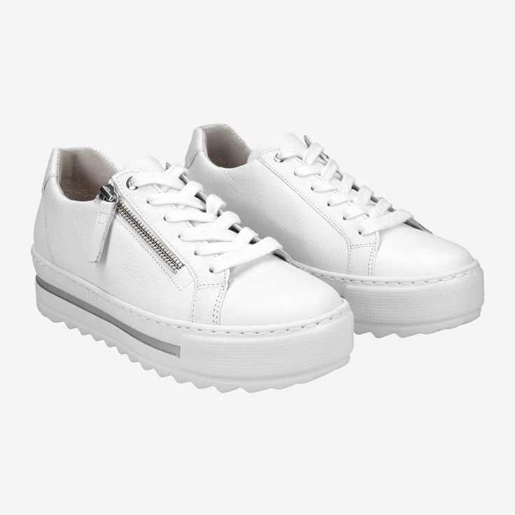 In a sporty design, this CULT sneaker from the house of Gabor inspires. You will enjoy pleasant comfort in it thanks to adaptable white leather and can also replace the insoles at will. The side zipper serves both as a visual highlight and your practical and convenient entry.
