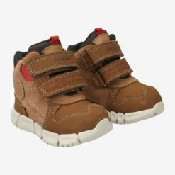 - Warm lining, breathable, maximum comfort, suitable for insoles, exchangeable footbed, entry loops, Velcro closures, logo embossing, contrast stitching, breathable