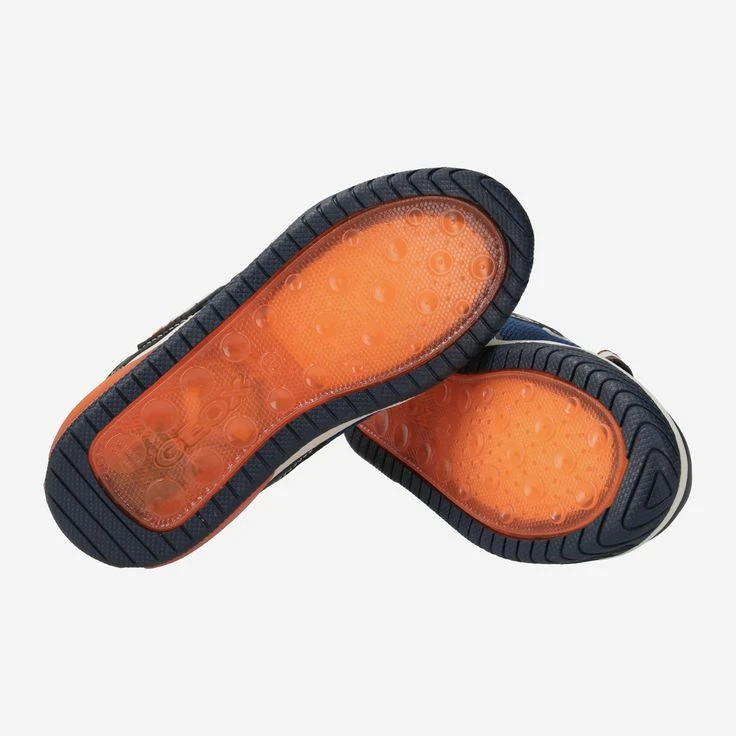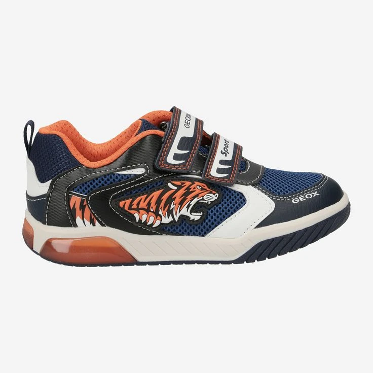- Exchangeable footbed, suitable for insoles, insole made of chrome-free tanned leather (breathable, shock-absorbing, antibacterial) / individually adjustable, Velcro fasteners, logo embossing, entry loop, padded upper, contrast stitching, 3d application „Tiger“, flashing function in the sole, breathable