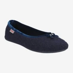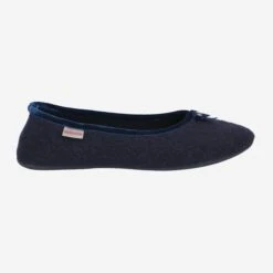With this blue slipper you will enjoy the comfort of pure wool and the shapely design of a ballerina. The rolled wool warms your foot ideally, is breathable and as a pure natural material always a good choice. The model „Hohenau“ by Giesswein is complemented by a non-slip, stable sole made of rubber, so that you step safely. The hem of dark blue velvet is decorated by a small bow with rhinestones.