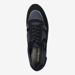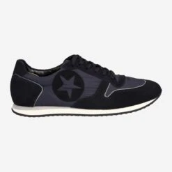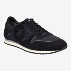 Finest suede leather distinguishes this model. The deep blue gives the shoe a noble touch and supports the sleek, petite shape in effect. With a cool punched out star on the side and silver narrow lines, the model offers a variety of well placed details. The lining and insole are also made of leather and offer supreme comfort as well as support. A contrasting rubber sole completes the design perfectly