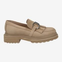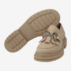 - Block heel, Platform sole, Leather application, Horsebit application, Loafer application, Decorative stitching, Breathable