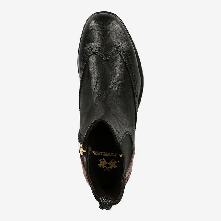 These super cool boots from La Martina convince not only by the use of high-quality materials, but also their detailed workmanship: Stylish Lyra perforation meets different types of leather, which are held together with casual stitching. An entry loop and a zipper make it easy for you to put on and take off. The large stretch insert on the outside of the shoe is reminiscent of a Chelsea boot.