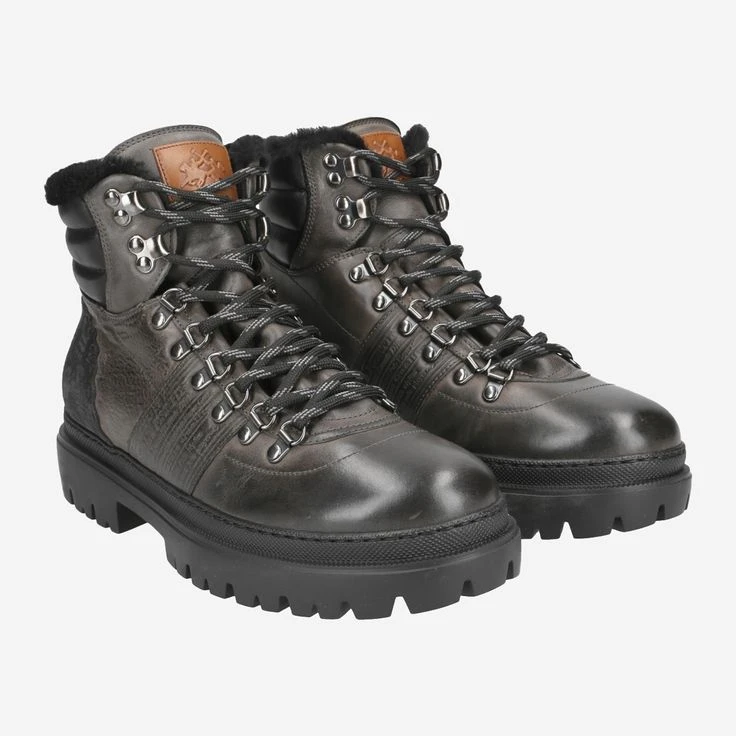 These lined Italian winter boots from La Martina embody the lifestyle of luxury, exclusivity and long-standing tradition. The manufacture once equipped the university teams of Harvard, Yale, Oxford and Cambridge, you enjoy precise workmanship and the highest quality standards. The gray leather in vintage look is refined by an inner lining of 100% lambskin, which gives you comfortably warm feet! Noble logo embossing, as well as cushioning quilting in the shaft round off your luxury experience!