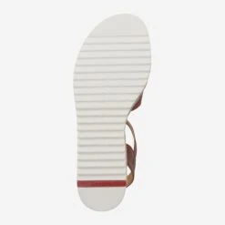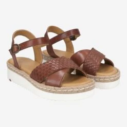 This high-quality summer sandal by LLOYD exudes downright exuberant vacation mood! The braided raffia strip complements the cognac-brown smooth leather ideally, and is additionally charismatically emphasized by a bright contrast stitching. The white sole is slip-resistant, and rounds off your light, exuberant summer look with sporty chic!