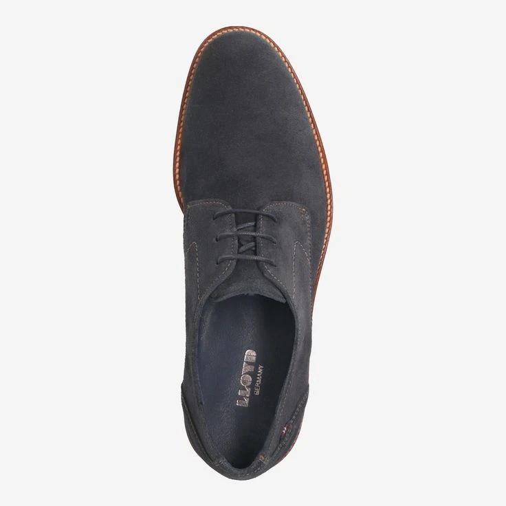 With the Derby lace-up shoe by LLOYD you enjoy dark blue suede, which is magically set in scene by a bright contrast strip. LANGSTON is an ideal all-rounder, and makes both to jeans, as well as in the office to the business look a good figure!