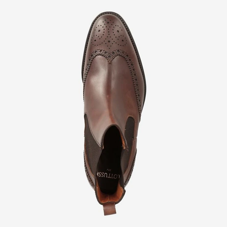 Classic Chelsea boots never go out of fashion! Therefore, it is best to choose a model like this one, which impresses with its high-quality features. This Chelsea boot convinces with additional decoration by a beautiful Lyra perforation. The Lottusse brand is for those who value quality.