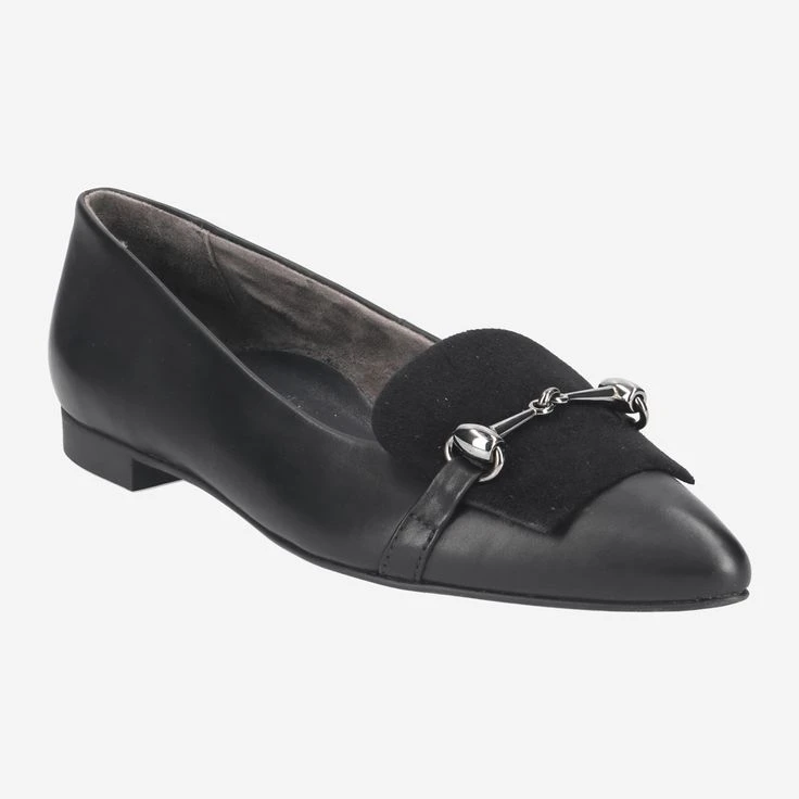 Style-conscious fashion women love these SUPER SOFT ballerinas from Paul Green, because they are the perfect compromise between elegance and comfort. Like this pair made of black smooth leather, which is styled very trendy with velvet leather tab and decorative bridle. The flexible outsole adds a touch of comfort. From jeans outfit to business style, these ballerinas add a feminine touch to any look. Paul Green makes shoes with great passion and mastery, expressed in perfection, quality, style and fit. The result: a unique, uplifting wearing experience! The Paul Green effect.