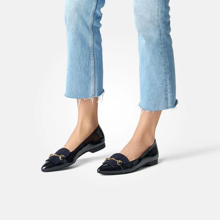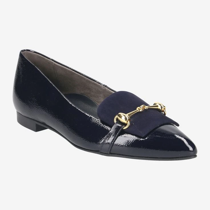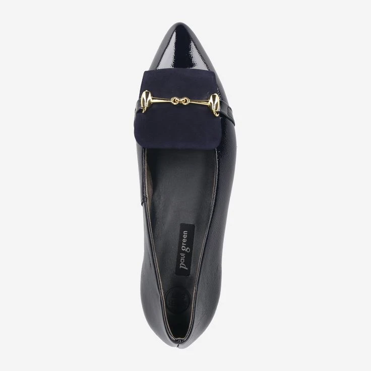 Style-conscious fashion women love these SUPER SOFT ballerinas from Paul Green, because they are the perfect compromise between elegance and comfort. Like this pair made of blue crumpled patent leather, which is styled very trendy with velvet leather strap and decorative bridle. The flexible outsole adds a touch of comfort. From jeans outfit to business style, these ballerinas add a feminine touch to any look. Paul Green makes shoes with great passion and mastery, expressed in perfection, quality, style and fit. The result: a unique, uplifting wearing experience! The Paul Green effect.