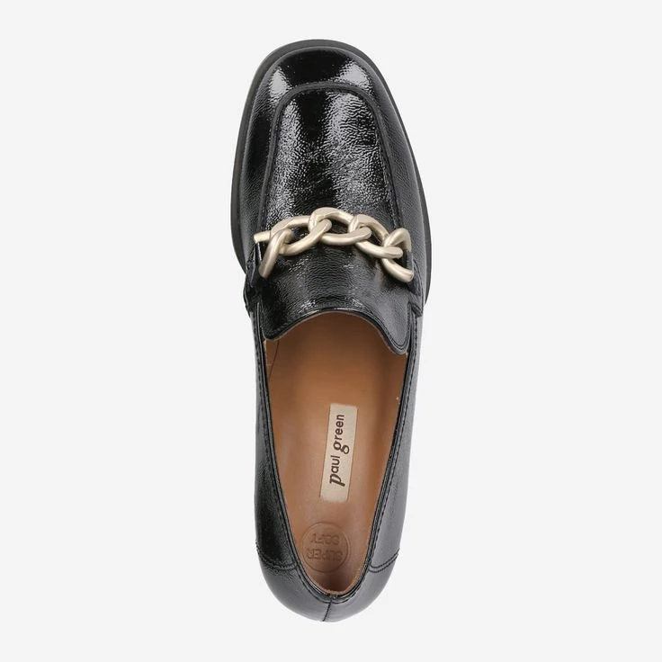 These SUPER SOFTEN high front pumps from Paul Green advance to real favorite pieces. Soft crumpled patent leather in black leaves nothing to be desired thanks to the super soft finish. The design is rounded off by the square silhouette and the golden clasp at the instep. A striking block heel skillfully rounds off the look and ensures a comfortable appearance. An exclusive pair for all days!