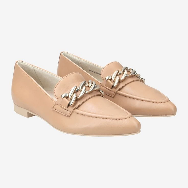 These elegant SUPER SOFT loafers by Paul Green are classics that perfectly round off fashionable and elegant combinations. Pleasantly flat and in a tapered shape, this model is made of light brown, perforated smooth leather with a noble decorative chain. The super soft processing supports the comfortable wearing feeling. Whether skirt or skinny jeans, with this pair you are always top styled! Paul Green shoes have a DNA of elegance and sportiness. This DNA is in every single shoe and in the entire range.