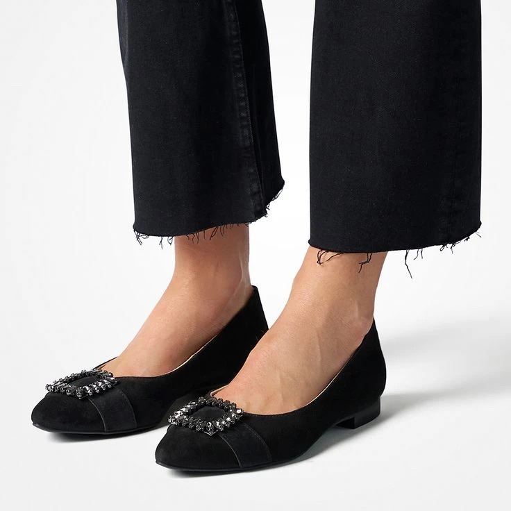 - Jewelry application with dark shiny stones, SuperSoft, supple leather, soft heel cap, light and flexible outsole, soft footbed
