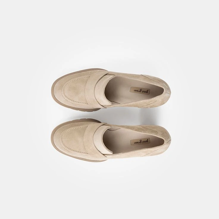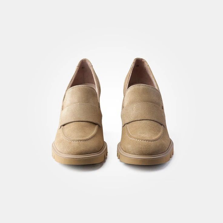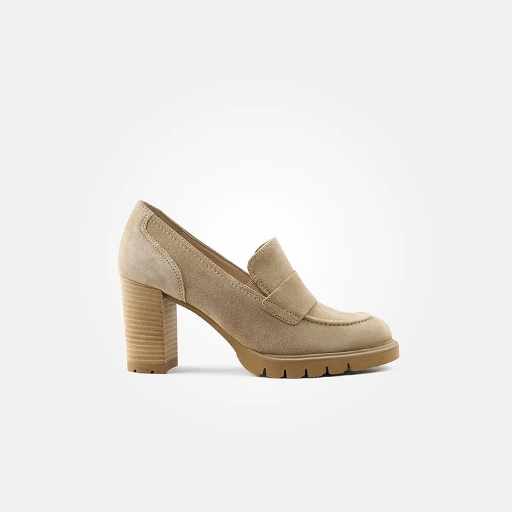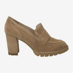 - Block heel, loafer-look application, decorative stitching, stretch inserts, breathable