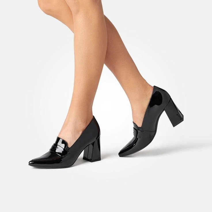 - Block heel, stretch inserts, loafer application, decorative stitching, breathable
