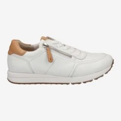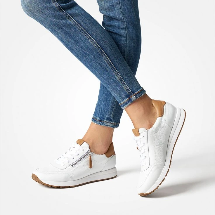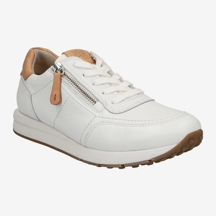You have waited long enough for this sneaker from Paul Green! It is made of exclusive white calfskin and complemented by cognac brown details. Here is right quality, material, design and comfort at the same time. Paul Green complements this model with a zipper, which practically simplifies dressing. The super soft heel cap pampers your foot with a snug fit. The footbed in relax width offers you dreamlike comfort, enjoy it!