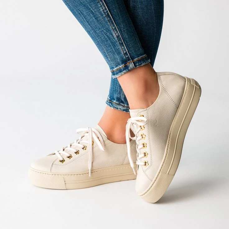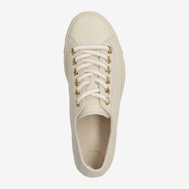 These SUPER SOFT Pauls from Paul Green combine a pretty style with a romantic touch. The soft smooth leather in beige nestles comfortably against the foot with the inner lining made of leather and TENCEL™ fibers. The classy lacing with charming floral eyelets brings trendy flair to your wardrobe. A comfortable outsole successfully rounds out the fantastic comfort. Discover these sneakers for your hip look! Each Paul Green shoe is handmade in up to 160 steps and then tested. This ensures that it meets the high requirements for fit and quality.