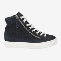 These SUPER SOFT Hightop Pauls from Paul Green are real trendsetters and also very comfortable. Soft nubuck leather with cleverly inserted perforation in blue gently nestles against the foot and provides a fashionable look with the side zipper. Pleasant leather lining with terry cloth guarantees a perfect wearing feeling. The flexible outsole offers a super walking feel. Add sporty zest to your outfit – whether casual or feminine! Paul Green makes shoes with great passion and mastery, expressed in perfection, quality, style and fit. The result: a unique, uplifting wearing experience! The Paul Green effect.