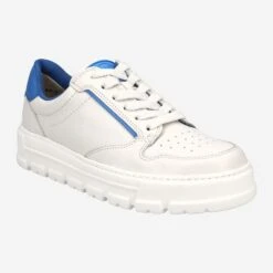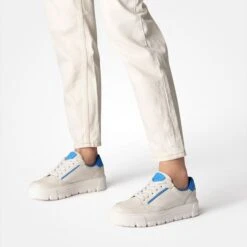 SUPER SOFT sneakers from Paul Green you can never have enough! With a fashionable leather mix in off-white and discreet blue details, this super soft model is particularly charming. The inner lining with leather and soft mesh lining ensures a great feeling when worn. The striking outsole rounds off the design perfectly. Casual and chic on the go – all day long! Paul Green makes shoes with great passion and mastery, which is expressed in perfection, quality, style and fit. The result: a unique, uplifting wearing experience! The Paul Green effect.