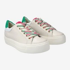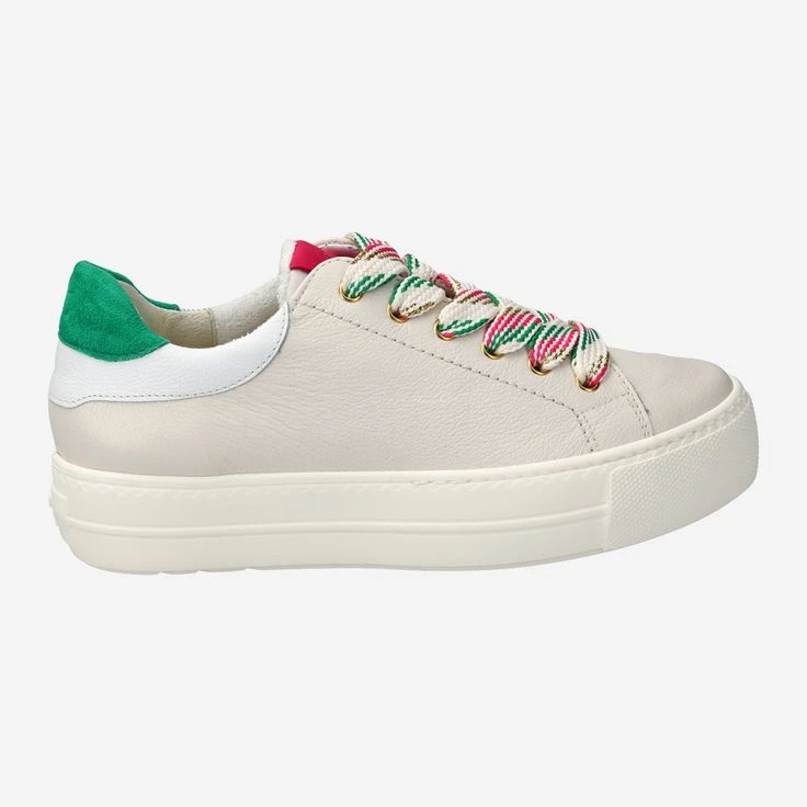 Complete your casual outfits with a new touch with these SUPER SOFT Pauls from Paul Green. The look is rounded off by the cuddly smooth leather in beige and the super soft lining made of leather with TENCEL™ fibers, which ensures perfect wearing comfort. The strikingly beautiful laces in different colors with green, pink and gold provide fashionable flair. The durable outsole lets you stride through the day buoyantly and cuts a great figure. Get this legendary upgrade with jeans or airy dresses!