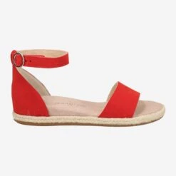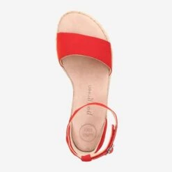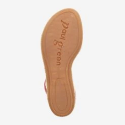 These red sandals from Paul Green come with Summer Feeling included!A practical A practical zipper at the ankle, a flat sole and the Super Soft technology, which makes the shoe an ideal companion for the summer by a pleasant wearing comfort. The stylish raffia frame and flexible outsole offer you comfort and style at the same time.