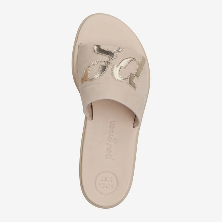 These relaxed SUPER SOFT mules from Paul Green score high on comfort this season. A wide bandage of beige nubuck leather with gold details celebrates summer with the usual casual charm. The flexible outsole with pronged tread rounds out the fashion statement with plenty of sophistication. Thanks to the incorporated footbed, they are guaranteed a perfect wearing experience. See for yourself! Paul Green makes shoes with great passion and mastery, which is expressed in perfection, quality, style and fit. The result: a unique, uplifting wearing experience! The Paul Green effect.
