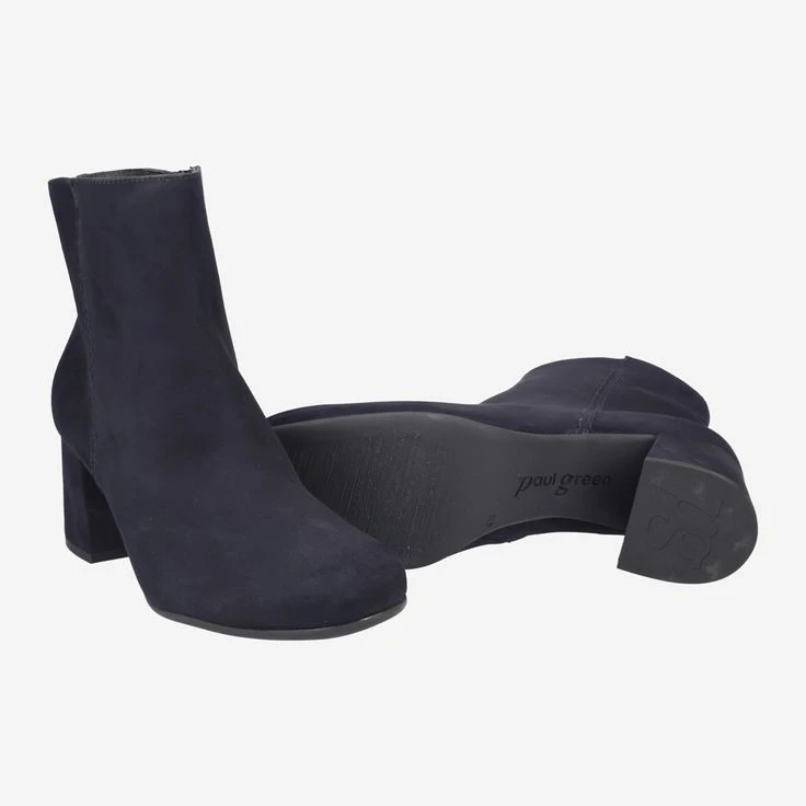 These ankle boots by Paul Green embody pure elegance and inspire with noble processing of blue velvet leather. The elegant design and the slightly round shape provide a harmonious finish. Thanks to the soft lining, the shoe can be worn comfortably and flexibly. The block heel covered with leather completes the combination-friendly look. A stunning pair for every day! Paul Green makes shoes with great passion and mastery, expressed in perfection, quality, style and fit. The result: a unique, uplifting wearing experience! The Paul Green effect.