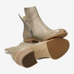 - breathable, zipper, block heel, slit on the upper, bright contrast stitching on the last, logo embossing