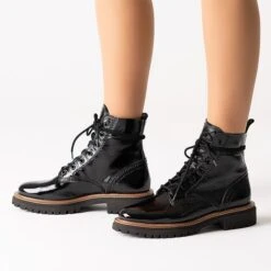 Both to jeans, as well as to airy dresses conjure up these boots an absolutely brilliant style! Paul Green processed in this black lace-up boots flexible leather in crumpled lacquer look that adapts ideally to your foot. The bright contrast trim divides the lace-up boot into a harmonious overall image. With these boots you enjoy a versatile all-rounder that complements your outfits easily.