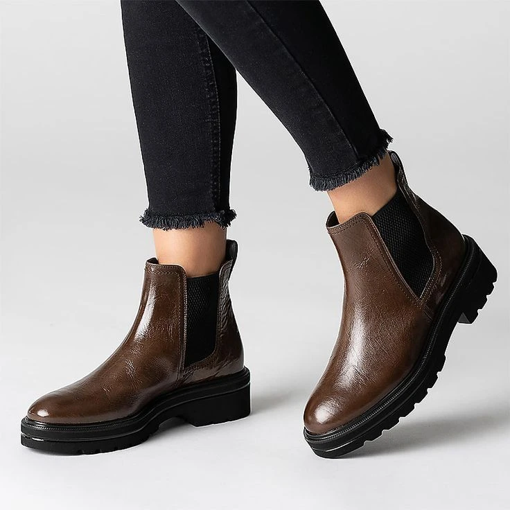 Turn your way into your very own catwalk! Enjoy this stylish Chelsea boots from Paul Green! The brown, coated smooth leather is effectively set off by the extra-light platform heel. The lateral stretch inserts allow you to easily put on and take off, and give you high flexibility. This is how fashion is fun!