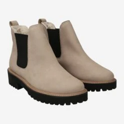 If the word „feel good„ were a shoe, it would definitely be this cozy ankle boot. Paul Green enriches us with a cream of a shoe molded in beige nubuck leather, lined with 100% merino wool and equipped with black EVA sole (light weight). This color combination of beige and black will let you walk trendy through the fall. In addition, the side inserts are a treat for every pair of eyes, which also provide a comfortable entry and exit. Look forward to fluffy, warm autumn days with your new everyday companion!