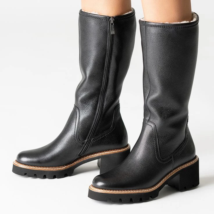 Casual? Modern? And yet also fancy? This Paul Green boot combines everything you can imagine. The black, grained leather convinces with its durability and is optimally set off by the contrast with the light-colored last. The black rubber sole also ensures an always secure appearance, no matter what the surface. The zipper on the side makes quick and practical dressing and undressing a breeze. Lined with warm merino lining (mulesing-free), you will certainly always warm with this pair. Expand your shoe assortment with this essential!