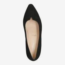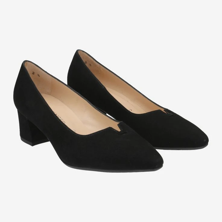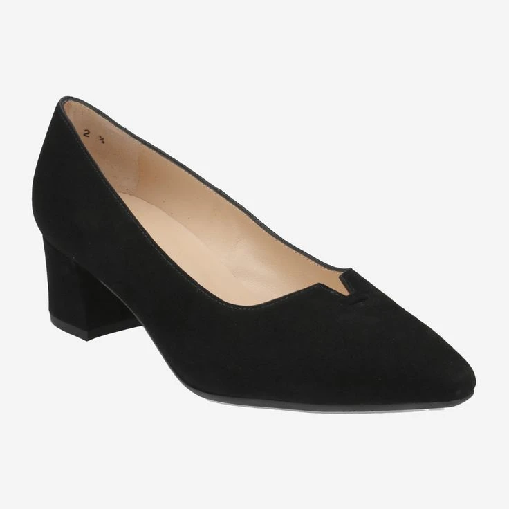 - Block heel, decorative notch at hem, leather covered heel, PLUS width, breathable
