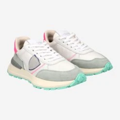 Do you believe in „love at first sight“? This luxury sneaker could be the ultimate test here. The new model of the Parisian designer Philippe Model inspires with a pink heel cap, a turquoise blue sole and some logo details! The emblem of the Parisian coat of arms distinguishes ANTIBES LOW as well as playful zigzag stitching and the verse reinforcement with logo embossing.