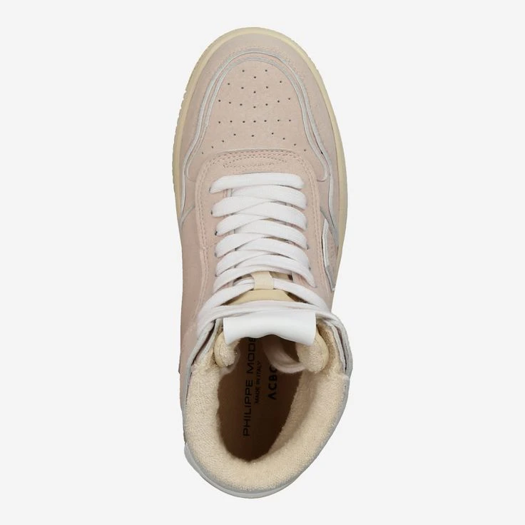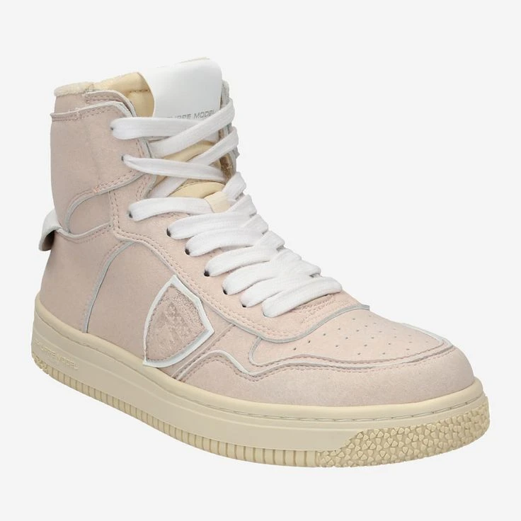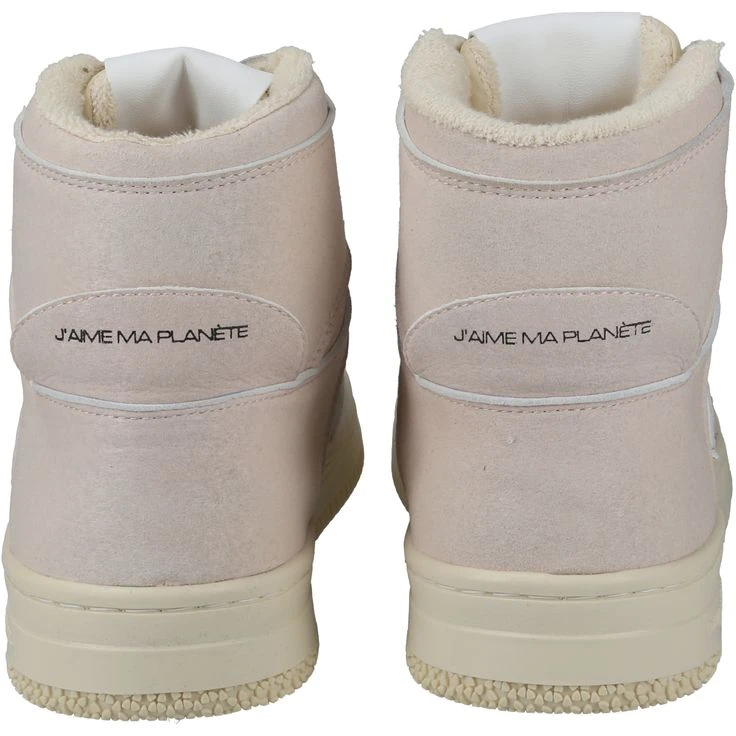 „J’AIME MA PLANÉTE“ (I love my planet) is the message – literally hidden – of this high-top sneaker from Philippe Model. The French luxury designer has hidden this declaration of love on the fold-over logo tab at the heel. So you get to choose: Wear it hidden – or flip the tab over? Both looks look great on this sporty casual shoe made of rosĂ© textile. An „iconic statement shoe“ and a declaration of love to the planet – simply terrific!