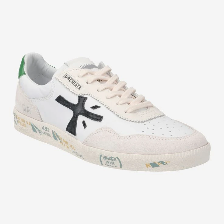 - Can also be worn as a slip-on (lacing optional), exchangeable footbed, suitable for insoles, logo embossing, decorative perforations, decorative stitching, logo application, contrast stitching, leather application with slogan „Be who you are“ on tongue, printed sole, breathable