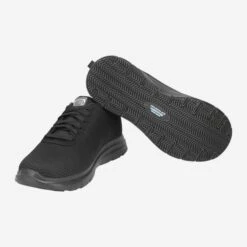 This black work shoe from Skechers reliably accompanies you on your work or leisure. The pleasant Relaxed-Fit® cut creates a comfortable width. In addition, the Air-cooled Momory-Foam™ insole gives you a competent cushioning. GHENTER definitely has tendencies to become your new favorite shoe!
