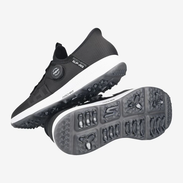 - Skechers Hands Free Slip-ins™, removable footbed, suitable for insoles, Skechers Arch Fit® insole, logo applications, Skechers GO GOLF® logo at the entry loop, Twist Fit™ twist closure for quick lacing, Heel Pillow™ for more stability of the foot, padded upper, GRIPFLEX outsole, 100% waterproof