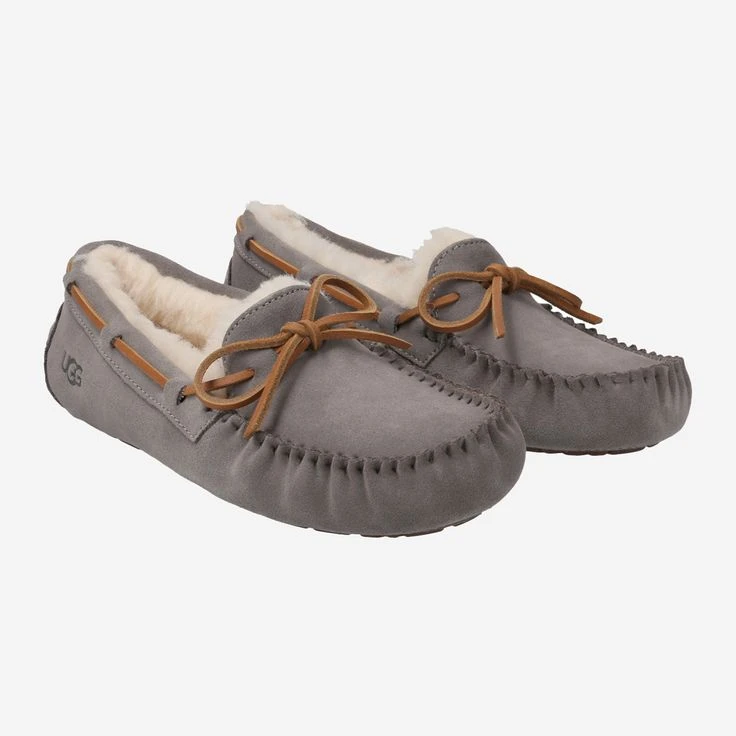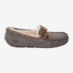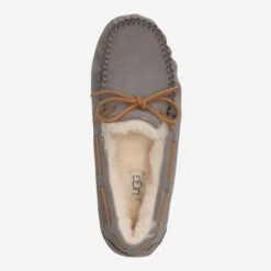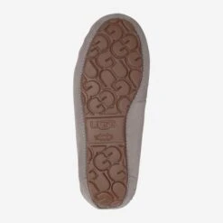Enjoy cozy warm feet on cold days! With this warmly lined slipper „Dakota“ from UGG two great natural materials meet: Velvety, gray suede, and soft wool (80% sheep’s wool / 20% Lyocell). You’ll enjoy breathability, great ski lodge style, and a non-slip sole! So the winter is fun!