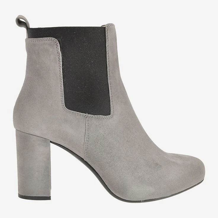 Elegant charm exudes this gray suede ankle boot from Unisa. A small incorporated platform and large stretch inserts were used and provide the extra comfort when worn
